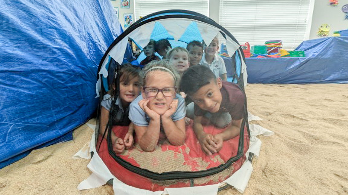 “Can we learn in the sand again today?” That’s the first question I hear every morning. And the answer for two weeks was yes! This year, our kindergarten classroom at Vista Ridge Academy in Erie, Colorado, transformed into something extraordinary: a classroom-sized sandbox where all our learning happened through hands-on, sensory-rich exploration. What began as a creative idea to help students engage their senses became one of the most joyful and faith-filled learning environments I’ve ever experienced. Each morning began with a prayer and a short worship thought—often beach or ocean- themed—reminding us that “God made everything, from the sand beneath our feet to the stars above our heads.” Then, the learning begins. On the day pictured here, we explored the letter D for dolphins, dig and discover. Students used shovels and buckets to build sandcastles and trace the letter D in the sand on top. Then they began adding more castles and letters to form words such as dad, dot and had. After blending words together, the pre-K students visited our classroom, and we began digging for dinosaurs. As we worked, we practiced our letter sounds: “D says /d/, like dinosaurs digging deep!” The sandbox became a joyful place of learning and laughter as children connected their phonics practice to real-world textures and play. When we gathered at the end of class, one kindergarten student summed it up perfectly: “I love working in the sand because it feels like we get to play all day, and learning is fun!” Each day, I watched my students grow more confident—not only in reading and writing but also in gratitude. Our sandbox wasn’t just about phonics. We used it for Bible stories, math concepts, social studies and science units about the ocean. Every subject becomes an adventure when students can dig, build and discover with their own hands. Kindergarten parent Alba Santos was thrilled for her daughter to have this experience saying, “I was so happy my child could experience something different in the classroom. She was excited to come to school every day and loved learning interesting facts about ocean animals.” Through this experience, I’ve seen students grow in cooperation, curiosity and gratitude. They weren’t just learning about God’s creation, they were learning within it. As Beach Week came to a joyful close, the kindergarten students gathered for a celebration of learning and praise. The classroom shimmered like a seaside festival, with students singing cheerful songs about the continents and oceans, proudly sharing what they had discovered about God’s world. Laughter and music filled the air as each child stepped forward, dressed as a colorful sea creature—from lobster to jellyfish—and confidently shared fun facts they had memorized. The culmination party was more than a performance; it was a reflection of two weeks spent learning through wonder, creativity and faith. With sandy hands and shining eyes, students celebrated not just what they learned, but the God who made it all. Mathias Gallaher is the kindergarten teacher at Vista Ridge Academy.