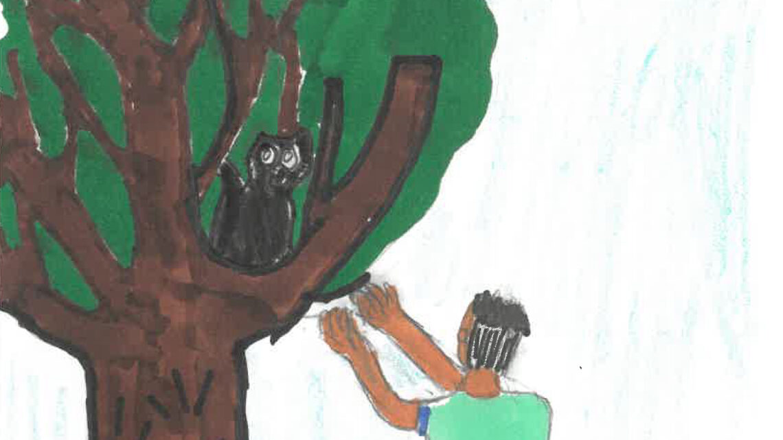 “If I pull just a little,” he thought, “the tree will bend low enough for me to reach the cat.”
