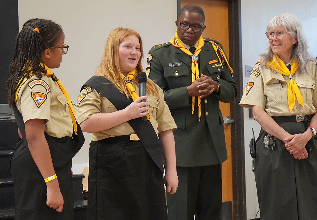 Douglas opened the awards ceremony by inviting Pathfinder members and leaders to recognize those who supported their PBE journey. Many lined up to thank club leaders, parents, and supporters who dedicate time and effort to their teams.