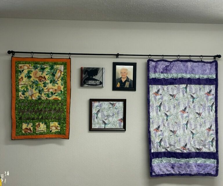 For years, the Kimberling City, Missouri Church has been known for all the quilts they made for “It’s My Very Own.” There were always quilts, with bags of love, hanging on the walls in their fellowship hall. The quilts were admired by visitors and members alike, and were greatly missed by everyone, including Dorothy Israel, when they were taken down. In memory of Dorothy, who was very involved in the IMVO program and made many quilts, the church now has some quilts on display, lovingly made by Lyle Brooks, Kimberling City church member, and a very involved member of the IMVO program.